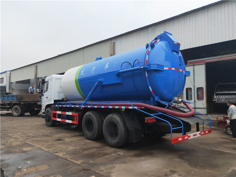 罐式吸污車,罐體液壓油缸舉升卸料,后蓋液壓油缸開啟鎖緊耐腐蝕密封條密封(保證了車輛的密封性運輸中滴水不漏)。罐內污物可通過液壓打開后蓋舉升罐體直接傾倒,吸污車可自吸自排,工作速度快,容量大,運輸方便,具有真空度高真空泵吸力大,吸程遠等優點,特別適合用于含水污泥、化糞池-下水道內的淤積物的抽吸、裝運和排卸,尤其可 吸下水道泥漿、淤泥、石子、磚塊等較大物體 。(比吸糞車的吸力更大)、噸位大、效率高、用途更廣泛的特點。