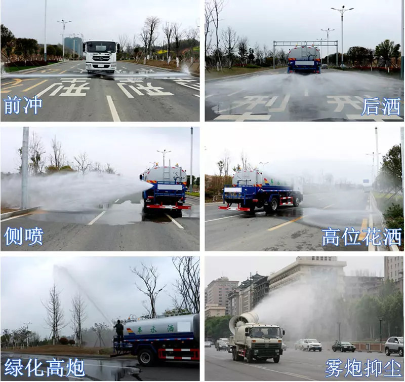 上裝配置:罐體采用國標Q235碳鋼板材制作,產(chǎn)品質(zhì)量成熟可靠,設(shè)計**合理,比同類灑水泵吸程遠、壓力大、使用壽命長,可泵進泵出。前沖、后灑、側(cè)噴、高位花灑、帶后工作平臺及綠化灑水高炮(可全方位旋轉(zhuǎn),可連續(xù)調(diào)成直沖狀、大雨、小雨、毛毛雨等),抑塵霧炮(可降塵、噴霧、消毒、打農(nóng)藥等),水位計,消防栓接口、快速接口、兩根輸水管,其余標配。